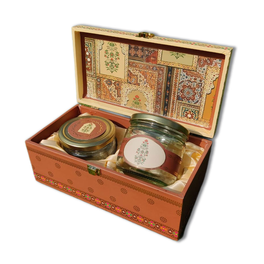 Elevate celebrations with our Royal Festive Gift Hamper. It’s a thoughtful mix of luxury and practicality, including two elegant glass jars for storage or decoration. Ideal for gifting during festivals or special occasions, this hamper adds a touch of sophistication to your loved ones’ festivities. Order now at Cutesy India!